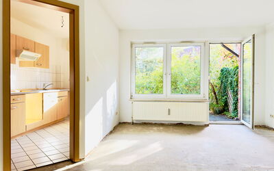 Diese charmante 2-Zimmer-Wohnung im Erdgeschoss eines Reihenendhauses überzeugt durch ihren durchdachten Grundriss, eine helle Atmosphäre und einen außergewöhnlich großen Gartenanteil von ca. 250 m² zur alleinigen Nutzung – ein echtes Highlight.