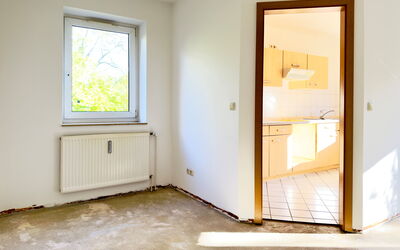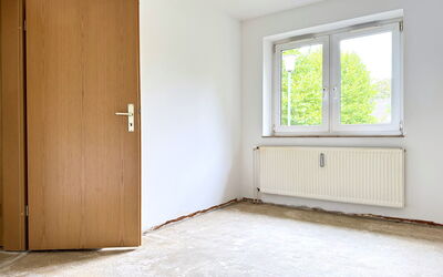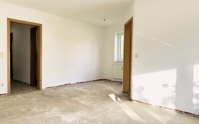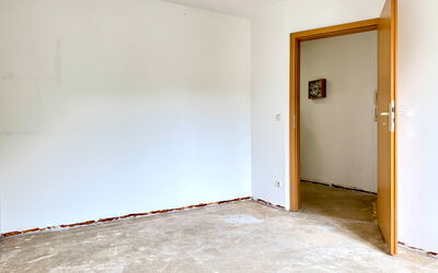 • Fußboden in Wohnzimmer, Schlafraum und Flur wurde entfernt und wartet auf Erneuerung durch den Käufer