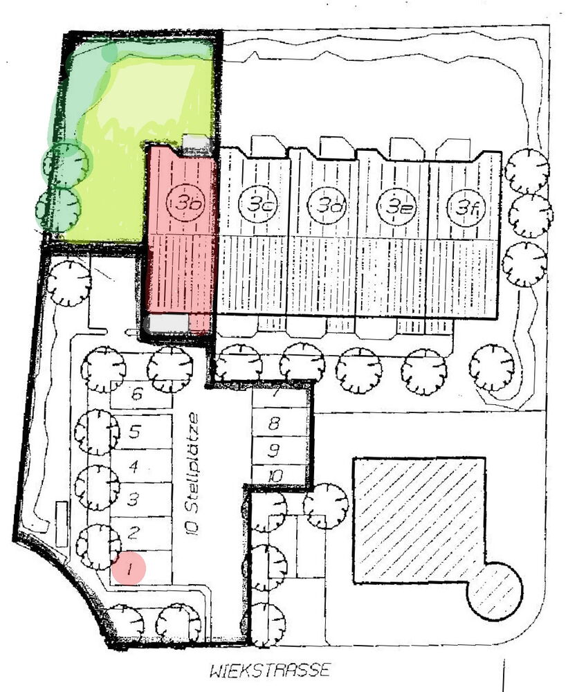 Die Hauszeile verfügt über großzügige Pkw-Stellplätze, wobei jeder Wohnung ein eigener Stellplatz fest zugeordnet ist.